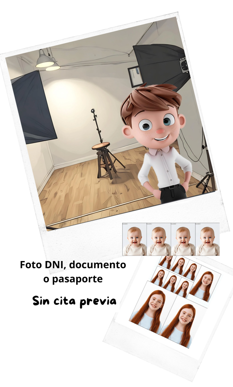 Somos especialistas en fotografía infantil y nuestras fotos de carnet para los más pequeños son reconocidas por su rapidez y por la comodidad que transmitimos. Empatizamos con ellos, los hacemos sentir seguros y logramos que el proceso sea natural y sin agobios.